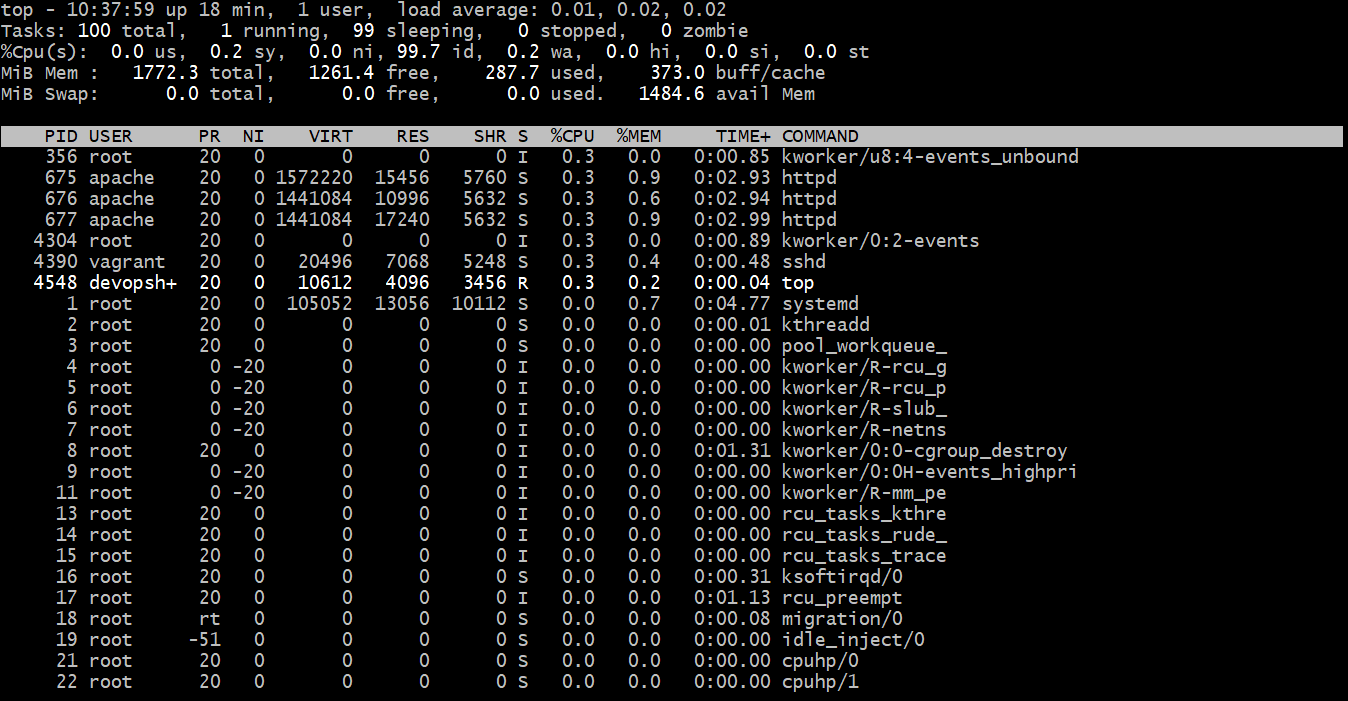 These show all running processes with CPU and memory usage.